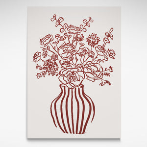Brighten your space with the stunning Burgundy Flower Print by Solstice Studio Prints. Hand-drawn blooms in a retro striped vase bring a fresh, stylish pop of colour to any room.