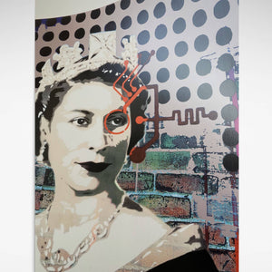 Check out the regal beauty of young Queen Elizabeth with the 'Queen 1.19 (ML)' screenprint. Created by artist Brad Novak, this unique, contemporary screenprint captures the timeless elegance and grace of Queen Elizabeth.